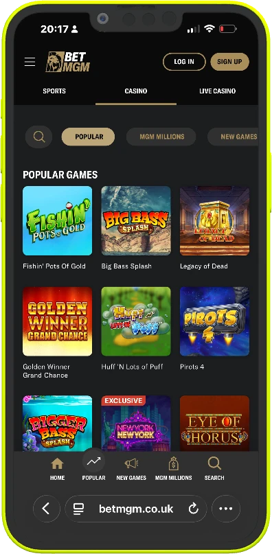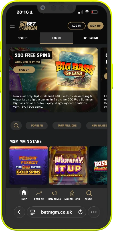 Visit one of the world's most recognized casino brands and enjoy 200 Free Spins on 'Big Bass Splash' when you join and play £10. You will get to play casino games exclusive to BETMGM ensuring a unique experience. BETMGM Millions offer you the chance to win the super sized Jackpot that sits at over £36 million!BetMGM Rating